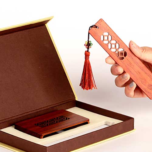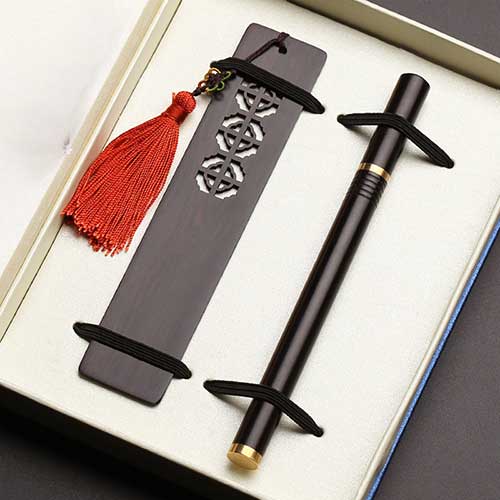 红木书签套装 黑檀木质创意复古中国风流苏礼物 定制刻字