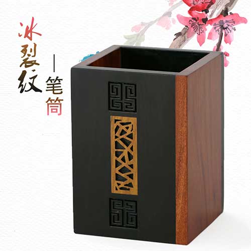 红木笔筒 创意礼品定制黑檀木笔筒商务礼物送长辈 家居摆件